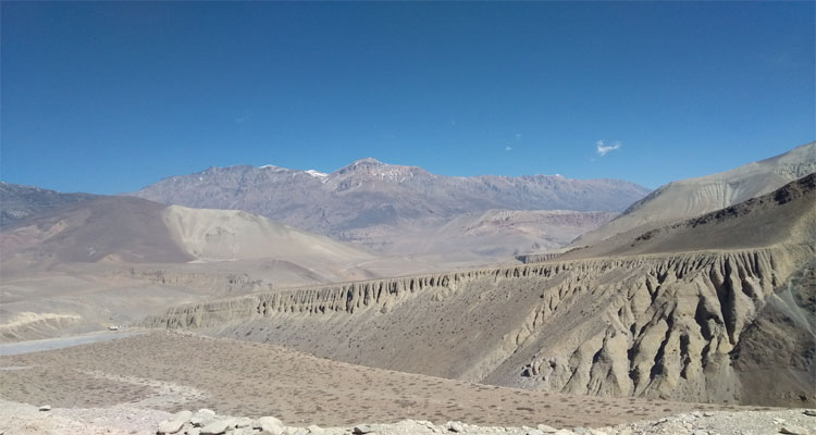 Le sentier commence vers MesoKanto La passe et après le franchissement du col, nous continuons de descendre vers Jomsom via Thini gaon, qui prend environ 7-8 heures.