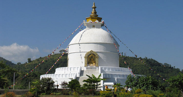 Ensuite départ pour Stupa de paix/ revenir en bateau : Stupa de paix, 20 minutes en véhicule puis randonnée en montée vers le Stupa environ 1h de marche ou en véhicule jusqu’au pied du Stupa. Situé au sommet d’une colline a était érigé pour la Paix dans le monde par un moine bouddhiste japonais Nipponzan Myohoji. On lui décerna le prix ‘’courage de Conscience’’ le 5 Juin 1998 à Sherborn, Massachusetts pour la pagode de la paix de la Nouvelle-Angleterre. Cette pagode fut bénie par le Dalai Lama. Très belle vue sur la vallée de Pokhara sur le massif de l'Annapurna, le lac Phewa. Puis redescendre par la forêt vers le lac environ 20 minutes pour retrouver votre bateau pour la traversée du lac de Pokhara.