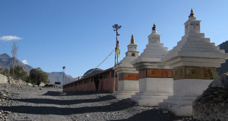 Poursuite vers Jomosom en suivant les rives de la Kali Gandaki et magnifique village de Marpha avec ses champs de pommiers. Passage à Thukuche maisons blanchies Beau panorama de la vallée et de ses sommets enneigés. Belle vue sur le Nilgiri environ 7h de marche.