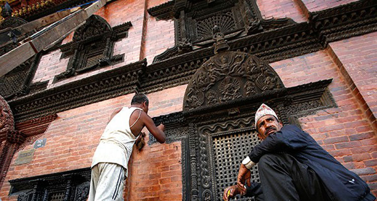 Durbar square: Durbar Square, le coeur de Katmandou. Cette grande place nous plonge dans l'histoire de la cité. Ancien palais royalHanuman Dhoka gardé par le dieu-singe Hanuman. Kumari Bahal, maison de la déesse vivante Kumari. Statue de Kala Bhairab, le dieu féroce combattant les démons. Temples consacrés à Shiva le dieu le plus vénéré du Népal, Taleju la déesse tutélaire de la famille royale le temple est réservé aux rois et aux prêtres, Krishna le dieu enjoué, Ganesh le dieu à tête d'éléphant. Toutes ces divinités, et combien d'autres, semblent veiller sur la cité. Les Népalais viennent les honorer tour à tour puis s'arrêtent aux marchés à Asan Tole ou Indra Chowk,