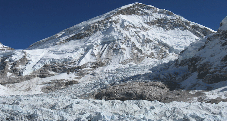 Montée le long de la moraine du glacier du Khumbu jusqu’au camp de base de l’Everest près de l’icefall, ensuite retour à Lobuche environ 6 de marche pour la journée.